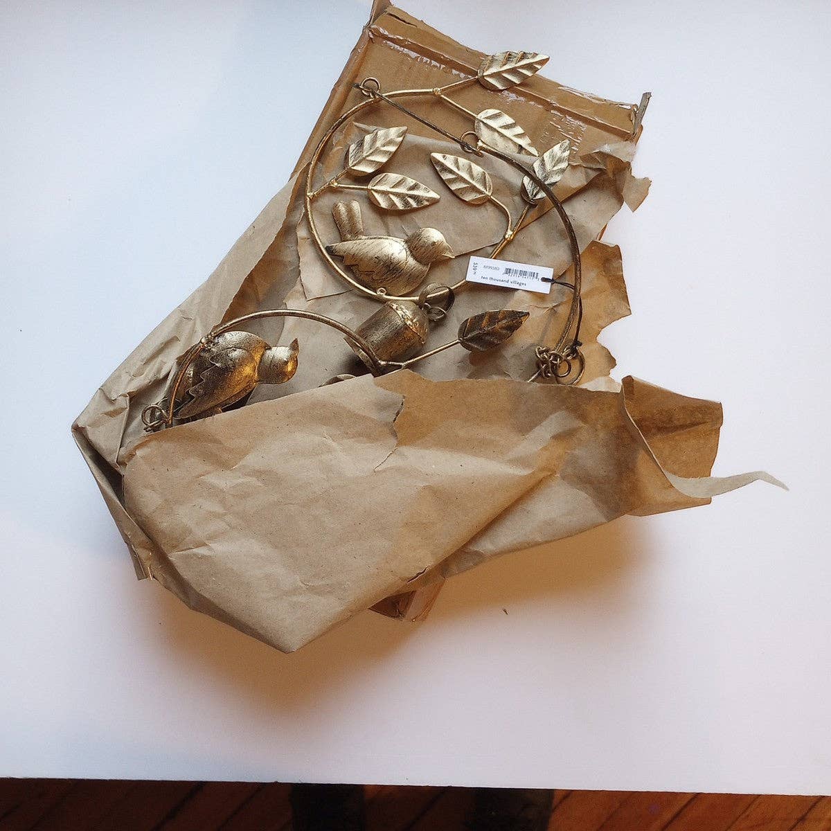 Listen to the soft chime of bells as you relax in your garden or on your porch, and be transported. The Pyar Bird Iron Wind Chime with antique gold finish is handcrafted from recycled iron and features two birds perched on leafy wreathes connected by a graceful arch. Lovingly crafted by artisans of the Asha Handicrafts Association. Sanskrit for "hope," Asha provides opportunities for artisans in and around Mumbai. Materials: Recycled iron, gold lacquer - Measures: 24"L x 14.5"W - Colors: Gold - Barcode: 732919547153 - Handcrafted in India