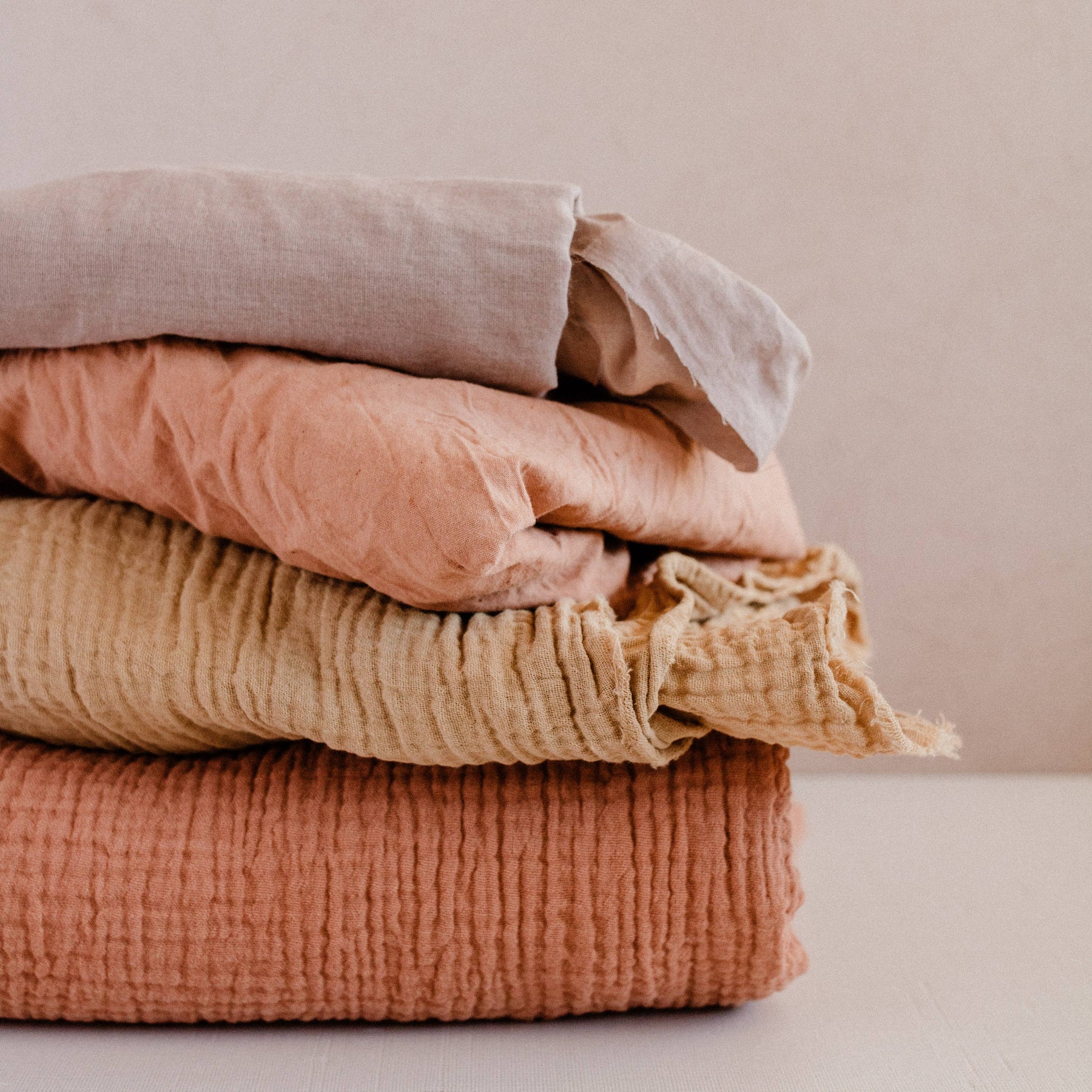 Crinkled Khaki gauze green leaf crinkled muted pink
