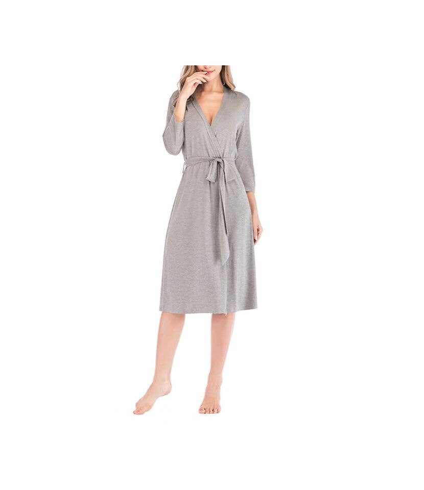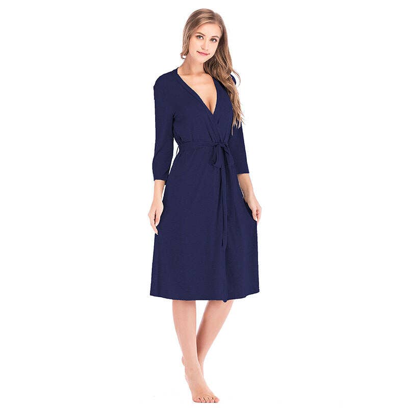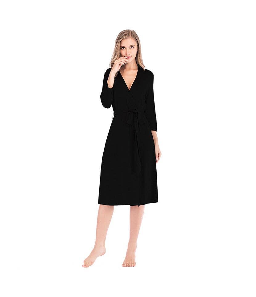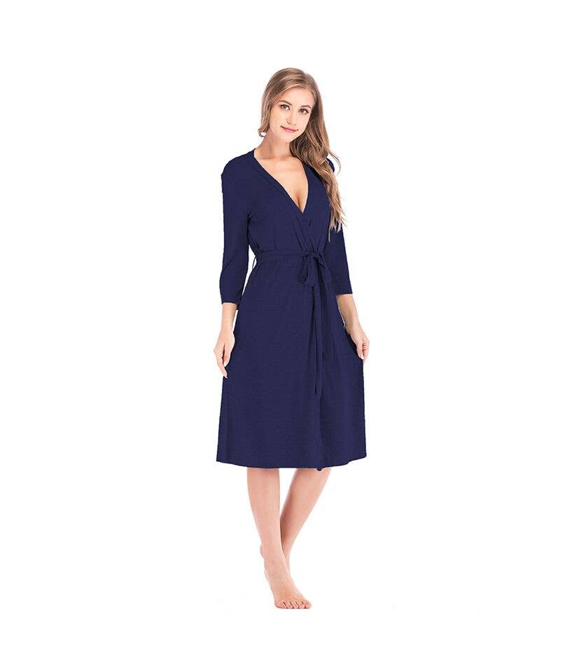 Material: Crafted from a luxurious blend of modal, cotton, and spandex, this nightgown offers exceptional comfort and breathability. The micro-elastic fabric stretches effortlessly, ensuring a perfect fit while remaining soft against the skin, making it ideal for lounging or restful nights. Design Features: Featuring a stylish lace-up detail and a relaxed silhouette, this nightgown combines casual elegance with practicality. The 3/4 sleeves provide added coverage, while the plain pattern enhances its versatility, allowing for easy mix-and-match with loungewear or sleepwear essentials. Sizing Options: Available in sizes S, M, L, XL, and XXL, this nightgown accommodates a variety of body types.