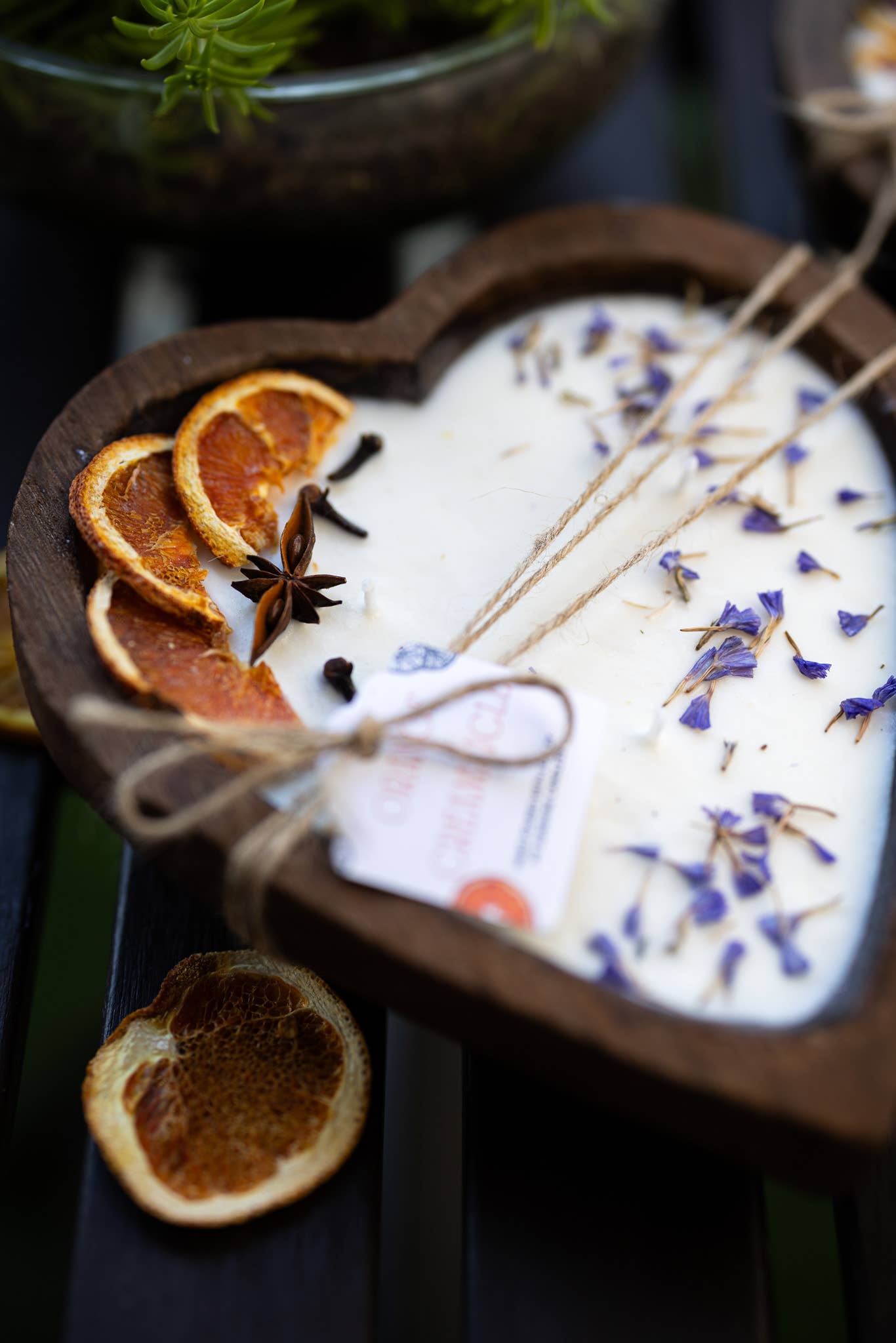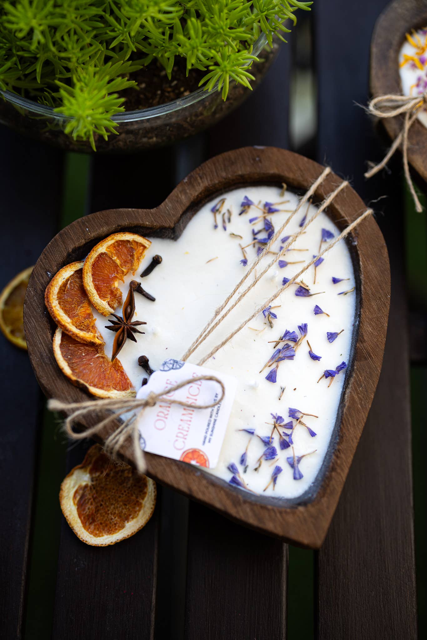 MySunshineCandless - Large Heart Wood Dough Bowl Candle/Orange Bowl Candle